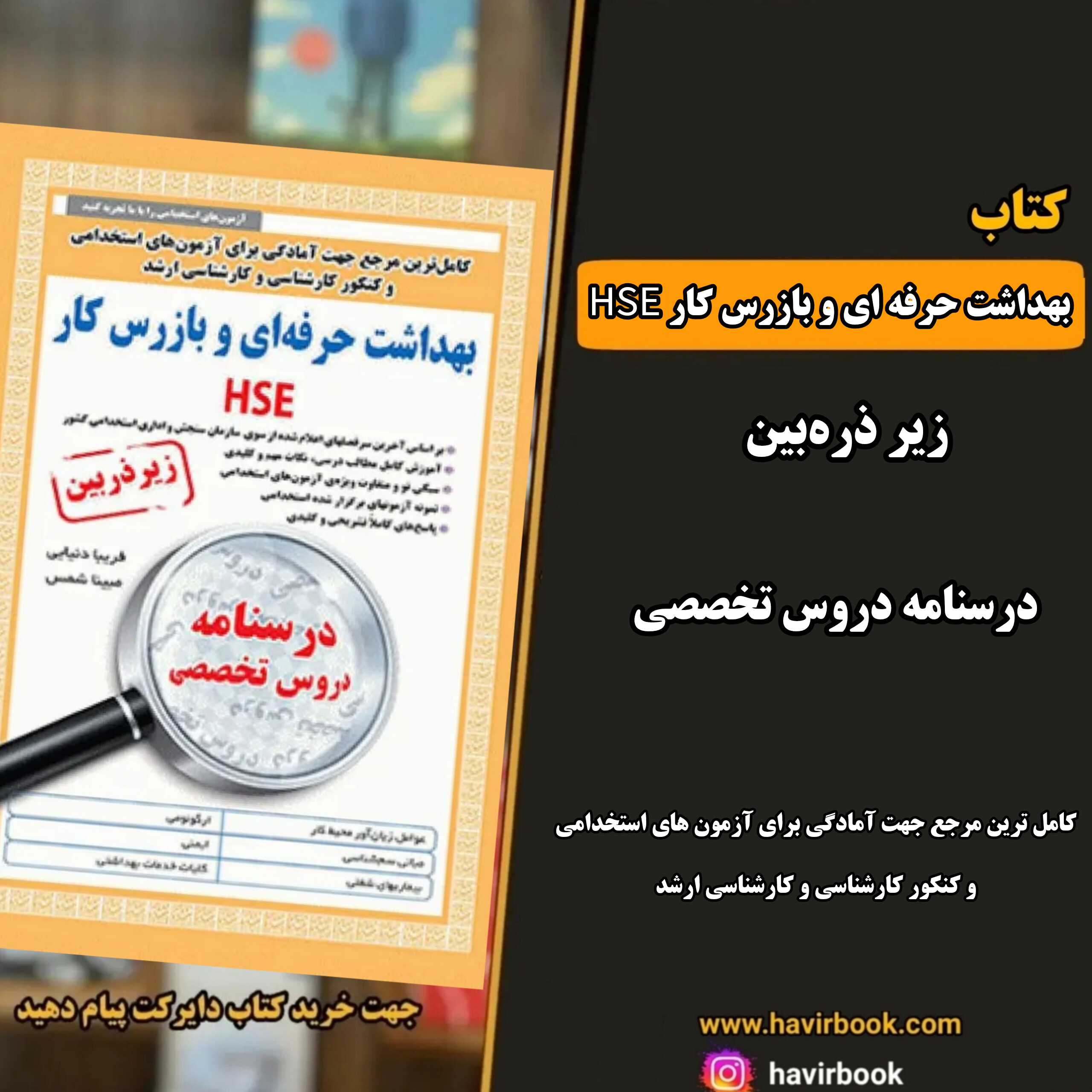 کتاب درسنامه دروس تخصصی آزمون استخدامی بهداشت حرفه ای و بازرس کار HSE زیر ذربین اثر فریبا دنیایی و مبینا شمس نشر آیین طب و پرستش کاملترین مرجع جهت آمادگی برای آزمونهای استخدامی و کنکور کارشناسی و کارشناسی ارشد شامل مباحث تخصصی آزمون استخدامی بهداشت حرفهای میباشد. در این کتاب سعی شده است کلیه مطالب به طور چکیده و کاربردی، با هدف افزایش سطح داوطلبان در پاسخدهی به سوالات آزمونهای استخدامی تهیه شود. هرفصل به صورت مجزا حاوی چکیده و نکات برتر به همراه سوالات برای داوطلبان آزمونهای استخدامی تنظیم آزمونهای استخدامی تنظیم گردیده است.