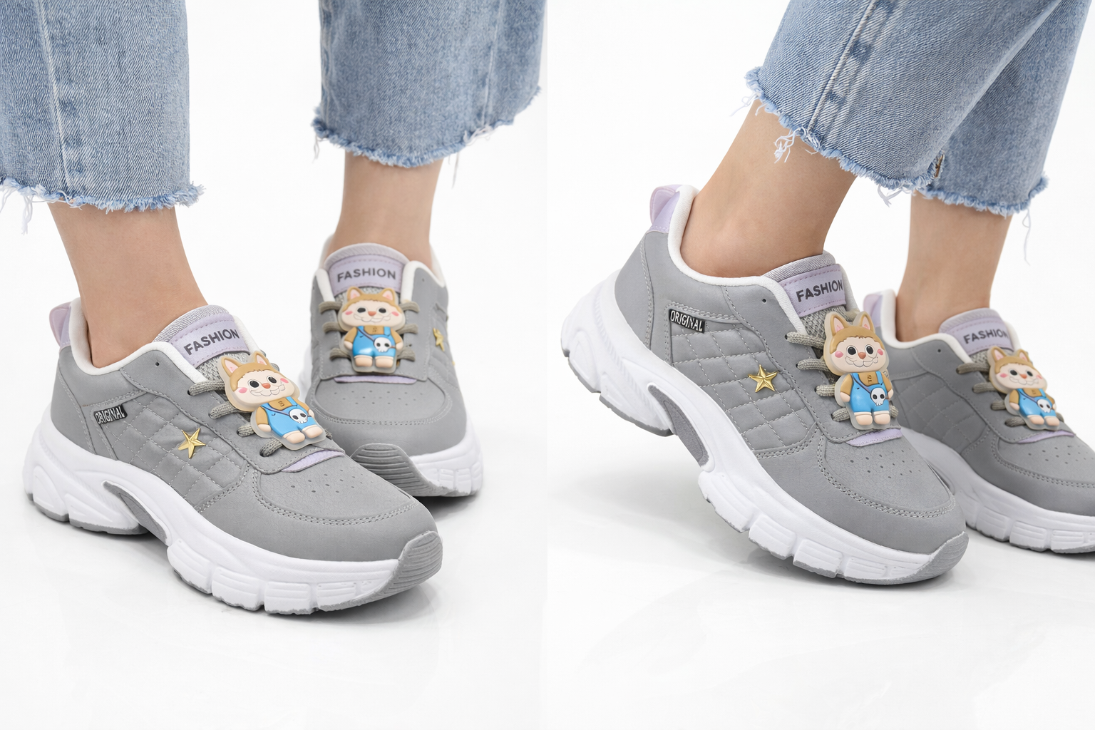 این کفش اسپرت دخترانه با طراحی خاص و فانتزی، انتخابی جذاب برای استایل روزمره و عالی است. رویهی مقاوم، کفی نرم و لژ سبک آن باعث راحتی در استفاده طولانیمدت میشود. طراحی مدرن همراه با آویز فانتزی و رنگ طوسی شیک، این کفش را به گزینهای محبوب برای نوجوانان و جوانان تبدیل کرده است.